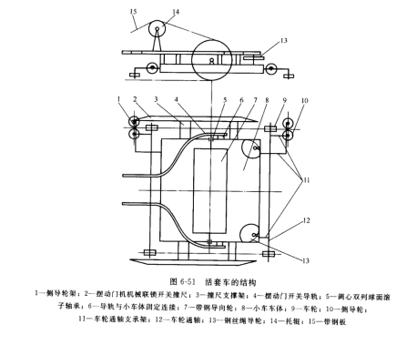 活套車的作用是牽引帶鋼。圖 6-51所示為活套車的結(jié)構(gòu)。