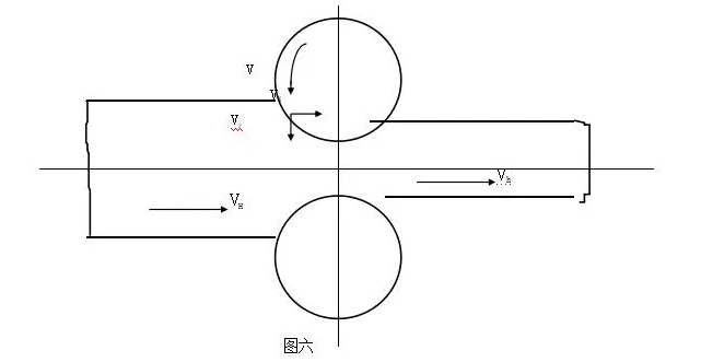 后滑就是軋件咬入軋輥的速度VH小于軋輥在該處的線(xiàn)速度V的現(xiàn)象。即VH<V。
